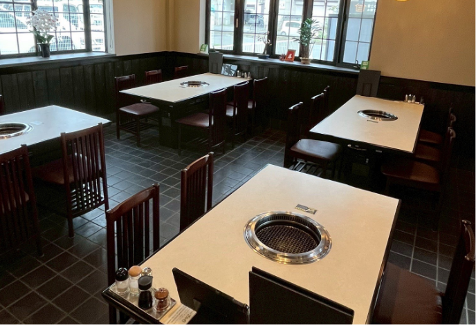 焼⾁富⼠では清潔感あふれる落ち着いた空間で、ゆったりと心ゆくまでお⾷事をお楽しみいただけます。